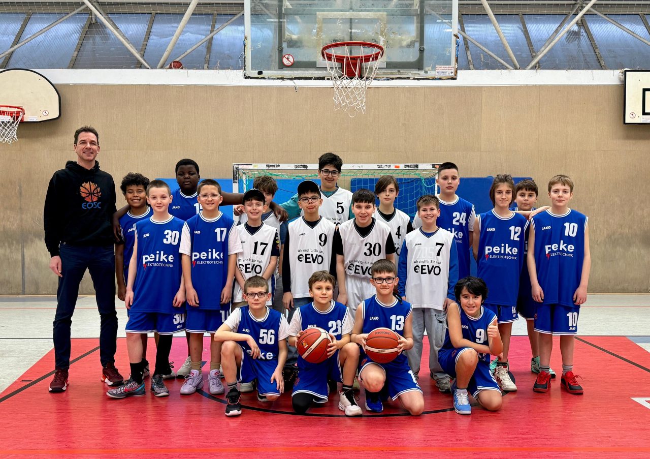 Beim letzten Spiel der Saison konnten (natürlich) nicht alle inzwischen 24 Spieler der U12 auf dem Spielfeld dabei sein, wohl aber am Spielfeldrand. 21 der 24 Jungs waren mit dabei und gaben Vollgas beim Anfeuern und / oder auf dem Spielfeld. Dort lief es leider in der ersten Halbzeit noch nicht so gut. Weil taktische Vereinbarungen nicht sehr gut umgesetzt wurden und ein bisschen auch das Glück bei den Wurfversuchen fehlte, lagen die Offenbacher zur Halbzeit deutlich (16:30) gegen einen starken Gegner aus Hanau zurück. Dank eines tollen Spiels in der zweiten Halbzeit kämpften sich die EOSC-Jungs zwischenzeitlich bis auf fünf Punkte heran, erzielten in der zweiten Halbzeit mehr als doppelt so viele Punkte als in der ersten. Am Ende konnte man die zweite Halbzeit gewinnen, nicht aber das Spiel. Hanau siegte mit 49:58. Jetzt freuen sich alle auf die Saisonabschlussfeier am kommenden Wochenende und ungefähr die Hälfte der Jungs auf den Wechsel in die U14 nach den Osterferien.